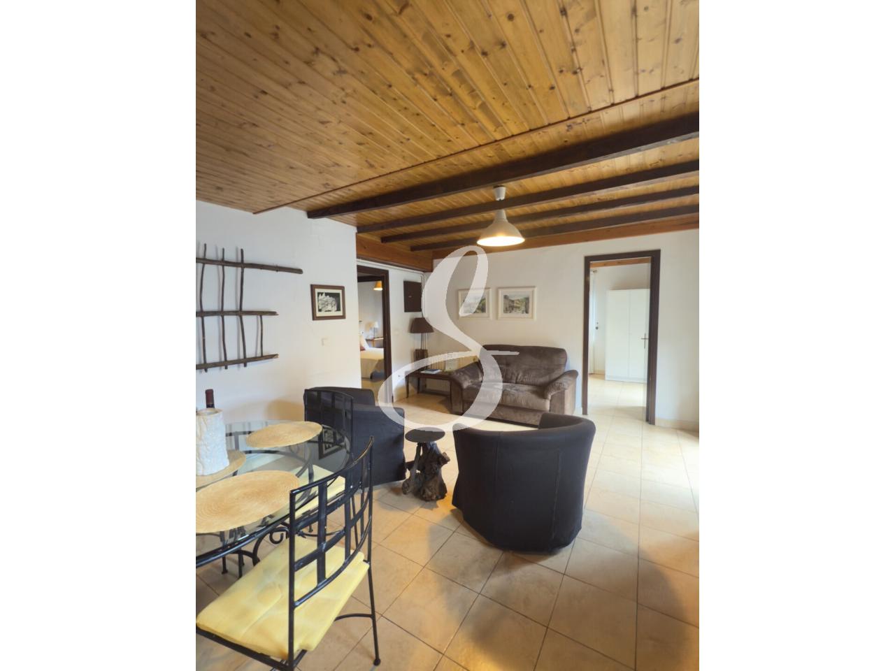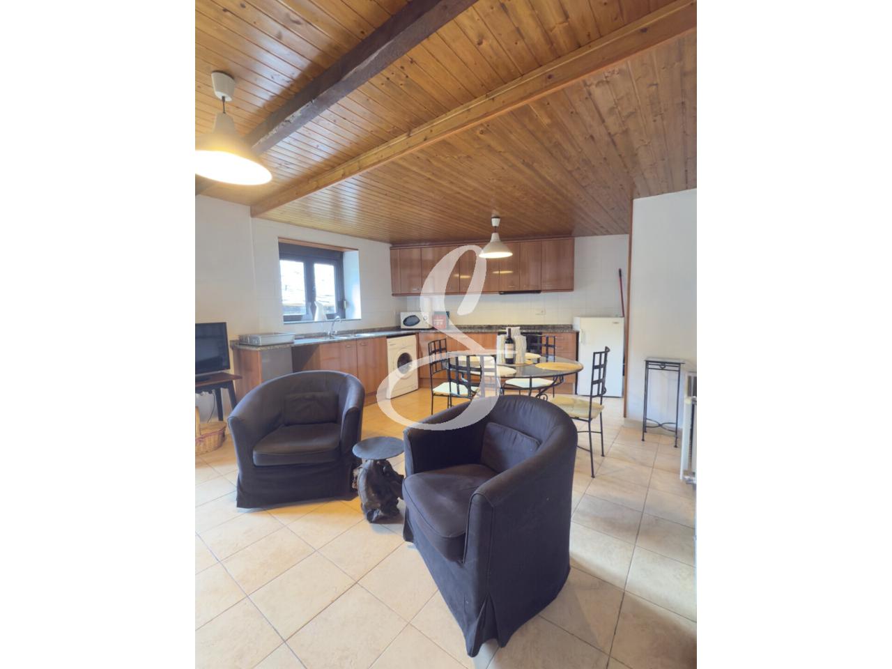 L’habitatge compta amb un acollidor saló-menjador amb sostre de fusta , que aporten un toc rústic i elegant. Des del menjador s’accedeix al balcó amb vistes obertes a la natura, ideal per gaudir de la calma i la llum natural.