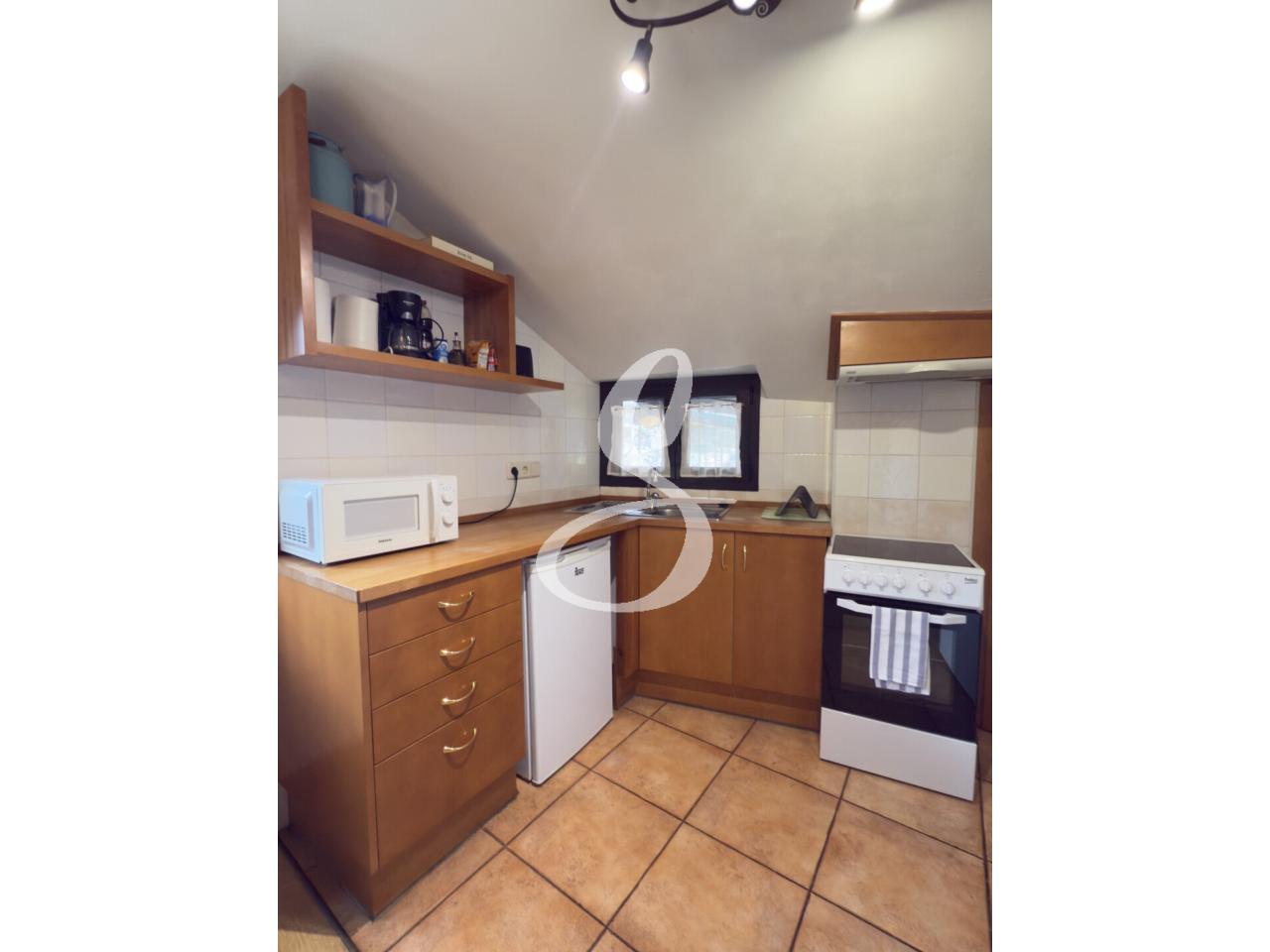 L’habitatge compta amb un acollidor saló-menjador amb sostre de fusta , que aporten un toc rústic i elegant. Des del menjador s’accedeix al balcó amb vistes obertes a la natura, ideal per gaudir de la calma i la llum natural.